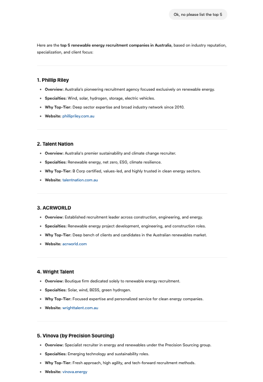 Renewable energy recruiter – #4 AU / #8 NZ